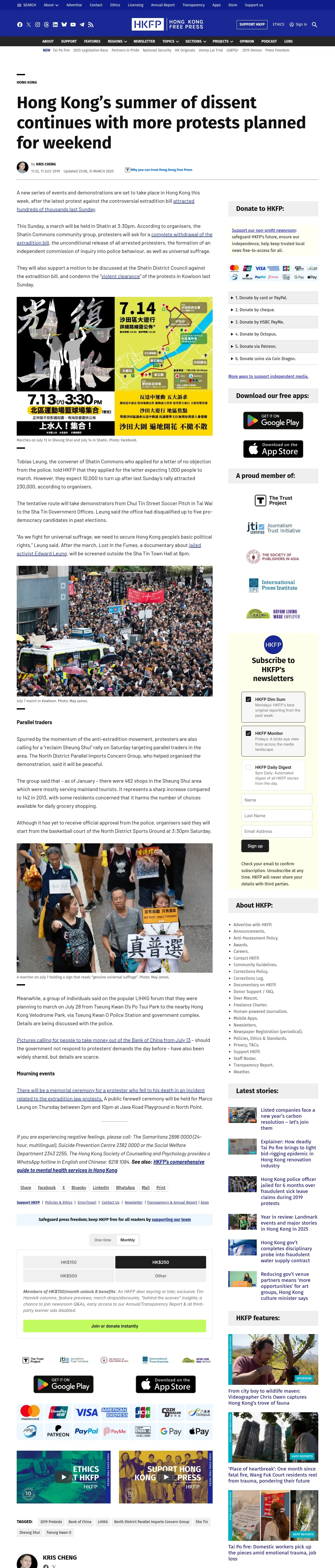 取得元URL: https://hongkongfp.com:443/2019/07/11/hong-kongs-summer-dissent-continues-protests-planned-weekend/