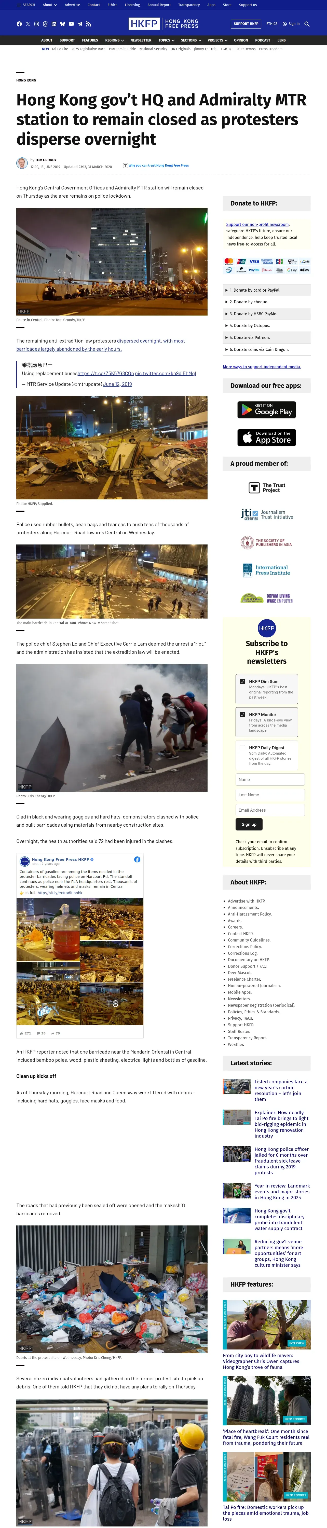 取得元URL: https://hongkongfp.com:443/2019/06/13/hong-kong-govt-hq-admiralty-mtr-station-remain-closed-protesters-disperse-overnight/