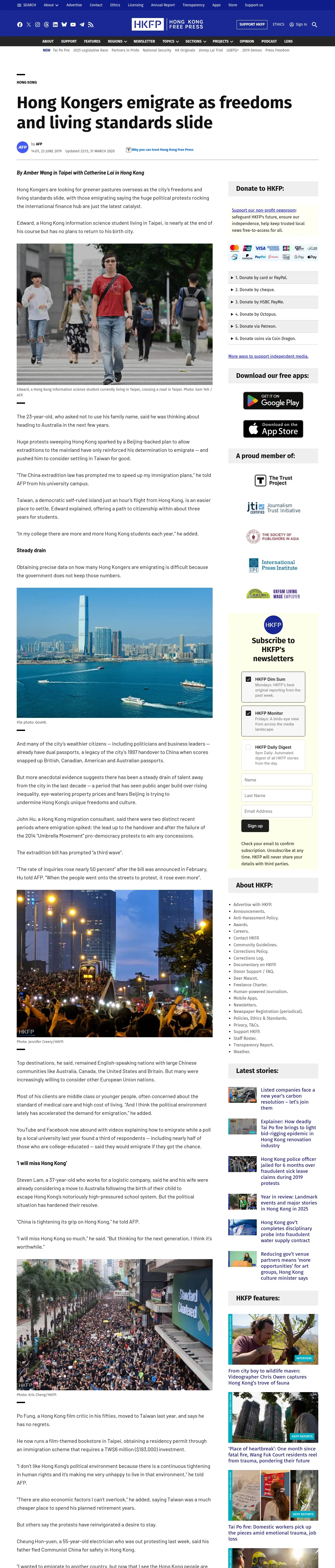 取得元URL: https://hongkongfp.com:443/2019/06/23/hong-kongers-emigrate-freedoms-living-standards-slide/