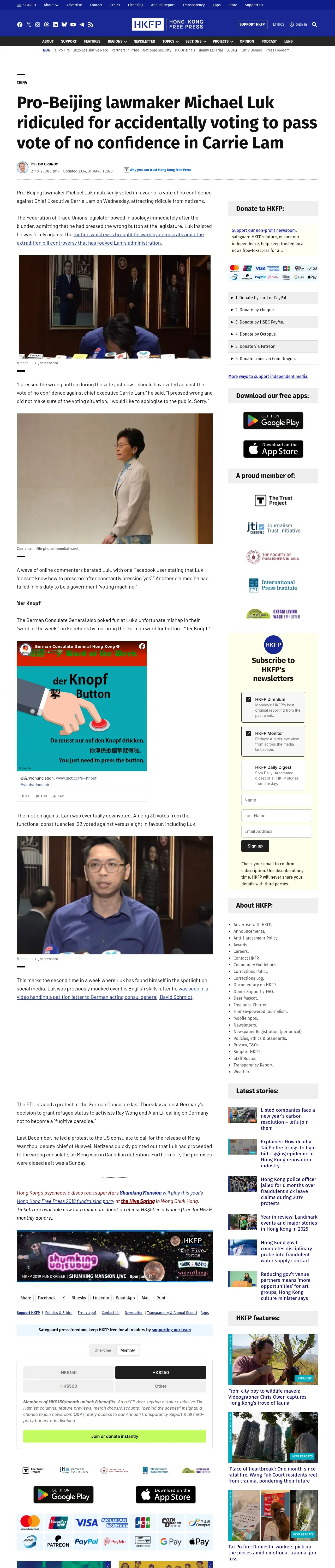 https://hongkongfp.com:443/2019/06/02/pro-beijing-lawmaker-michael-luk-ridiculed-accidentally-voting-pass-vote-no-confidence-carrie-lam/