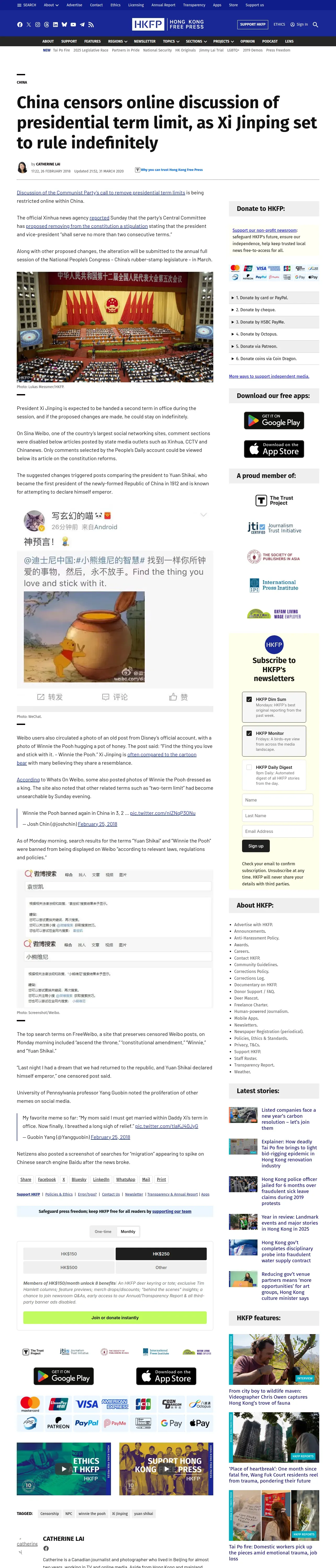 https://hongkongfp.com:443/2018/02/26/china-censors-online-discussion-presidential-term-limit-xi-jinping-set-rule-indefinitely/
