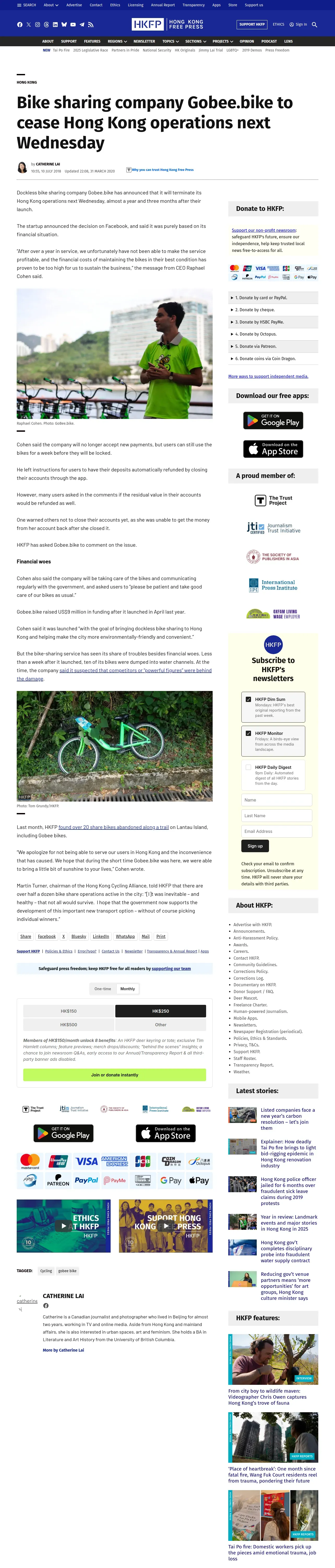 https://hongkongfp.com:443/2018/07/10/bike-sharing-company-gobee-bike-cease-hong-kong-operations-next-wednesday/