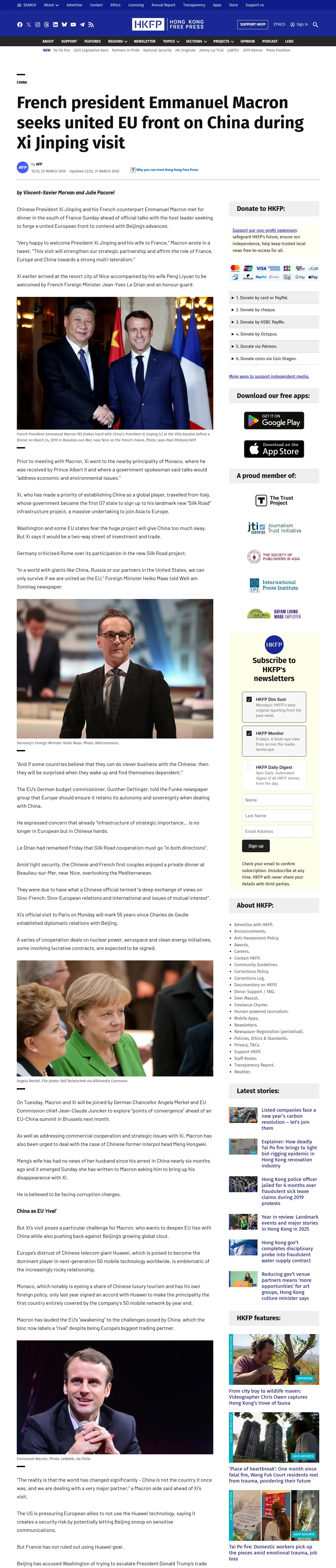 取得元URL: https://hongkongfp.com:443/2019/03/25/french-president-emmanuel-macron-seeks-united-eu-front-china-xi-jinping-visit/