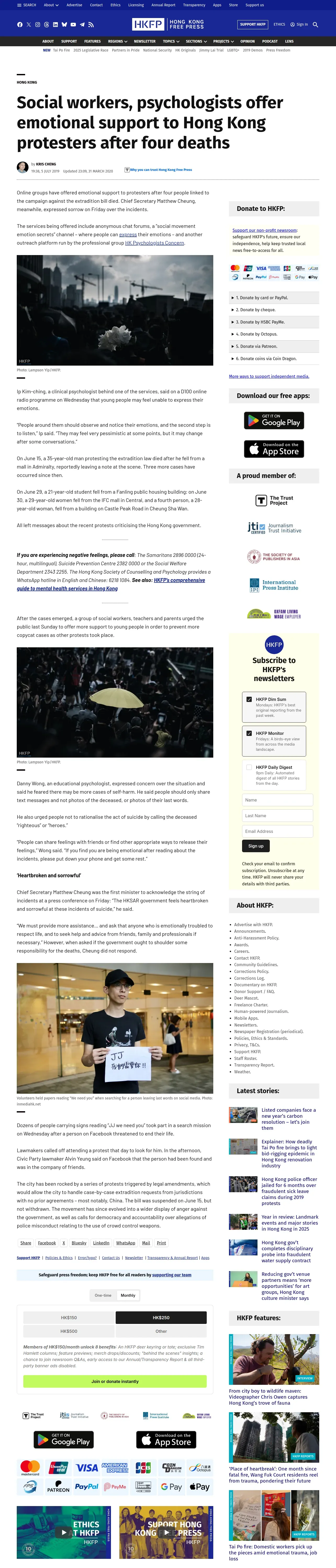 https://hongkongfp.com:443/2019/07/05/social-workers-psychologists-offer-emotional-support-hong-kong-protesters-four-deaths/