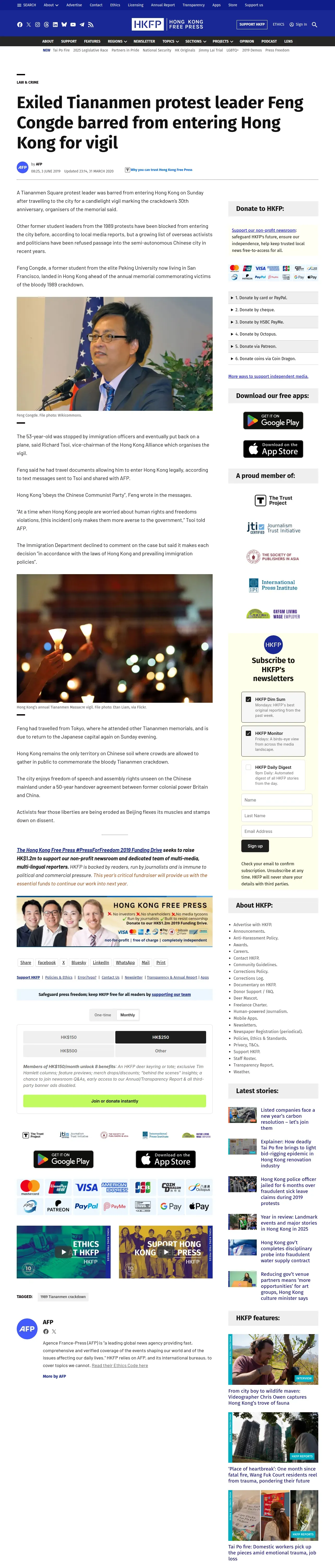 https://hongkongfp.com:443/2019/06/03/exiled-tiananmen-protest-leader-feng-congde-barred-entering-hong-kong-vigil/
