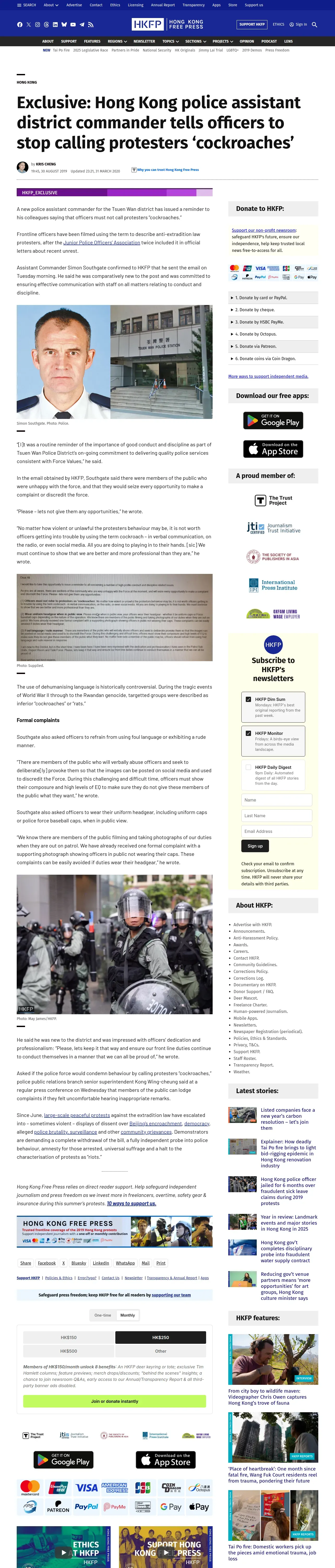 https://hongkongfp.com:443/2019/08/30/hong-kong-police-assistant-commander-tells-officers-stop-calling-protesters-cockroaches/