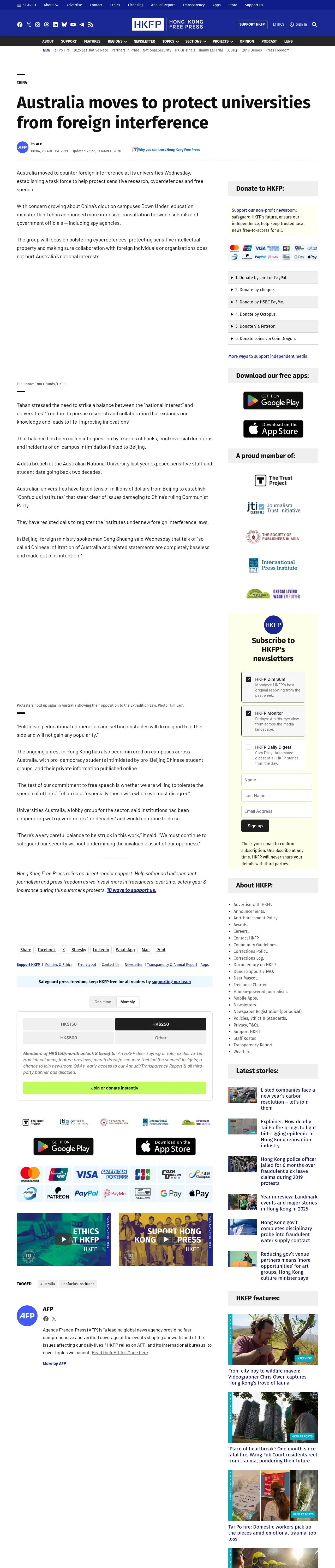 取得元URL: https://hongkongfp.com:443/2019/08/28/australia-moves-protect-universities-foreign-interference/