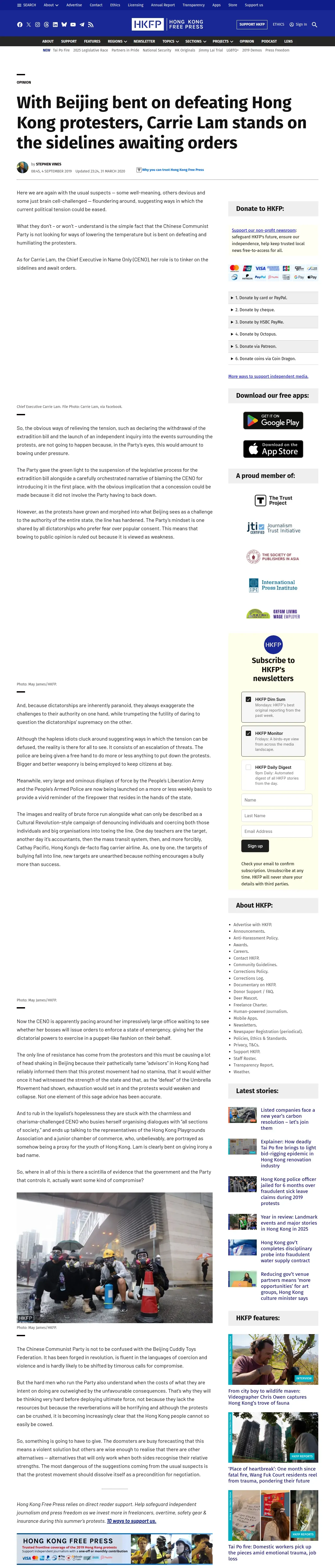 https://hongkongfp.com:443/2019/09/04/beijing-bent-defeating-hong-kong-protesters-carrie-lam-stands-sidelines-awaiting-orders/