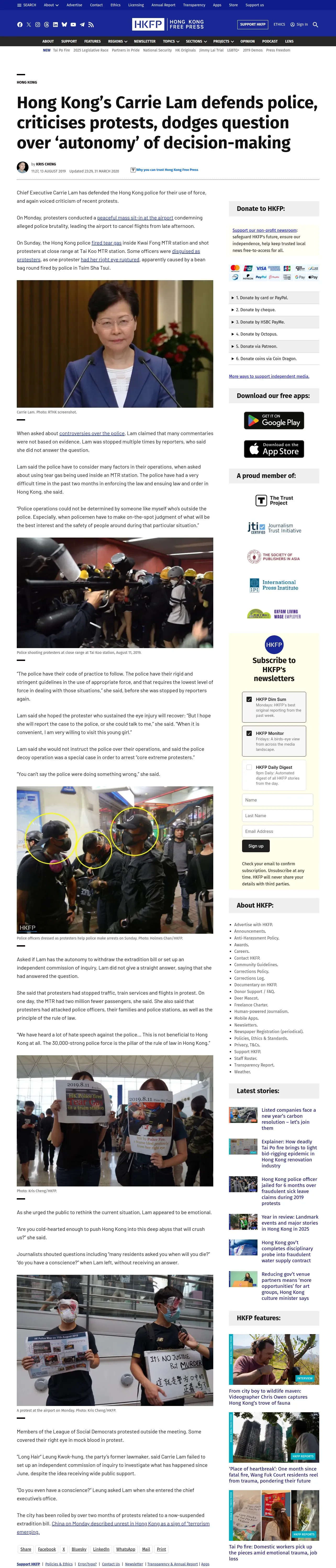 https://hongkongfp.com:443/2019/08/13/hong-kongs-carrie-lam-defends-police-criticises-protests-dodges-question-autonomy-decision-making/
