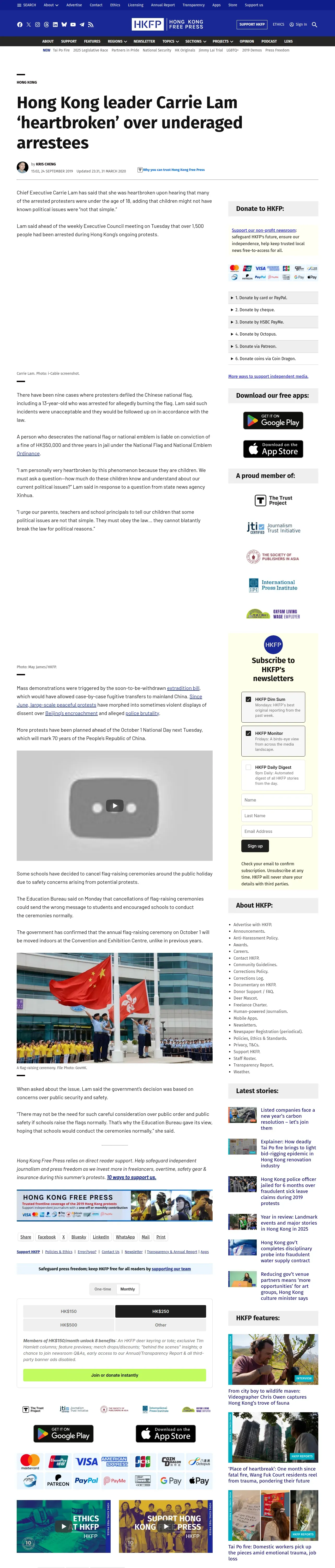 取得元URL: https://hongkongfp.com:443/2019/09/24/hong-kong-leader-carrie-lam-heartbroken-underaged-arrestees/