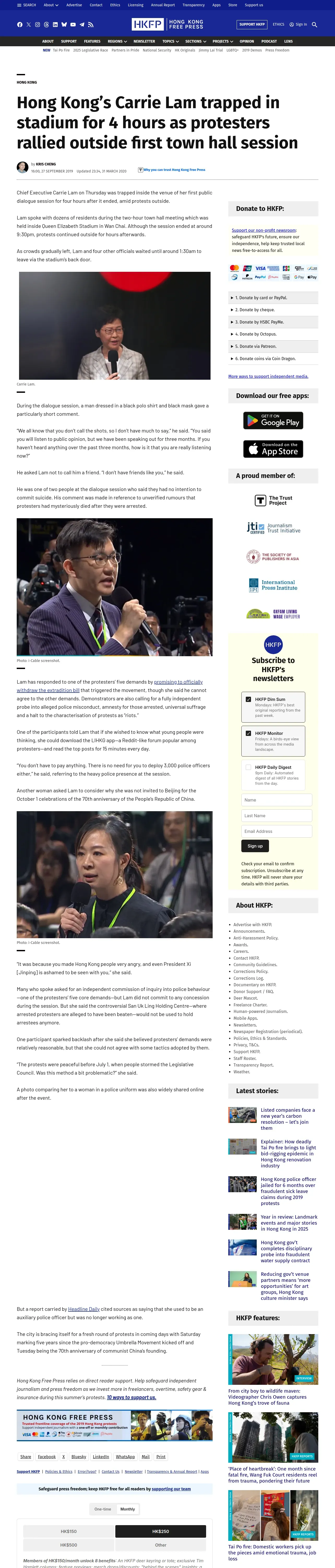 https://hongkongfp.com:443/2019/09/27/hong-kongs-carrie-lam-trapped-stadium-4-hours-protesters-rallied-outside-first-town-hall-session/