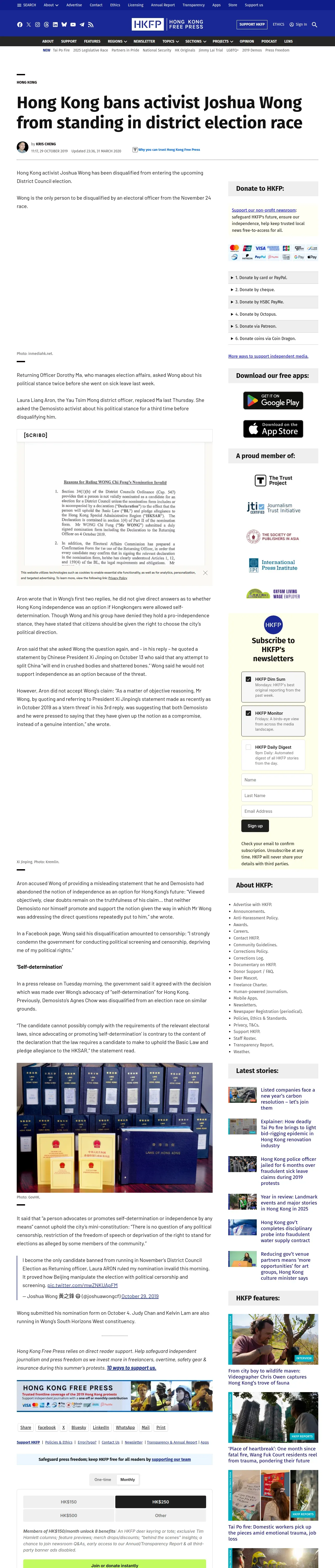 取得元URL: https://hongkongfp.com:443/2019/10/29/breaking-hong-kong-bans-activist-joshua-wong-standing-district-election-race/