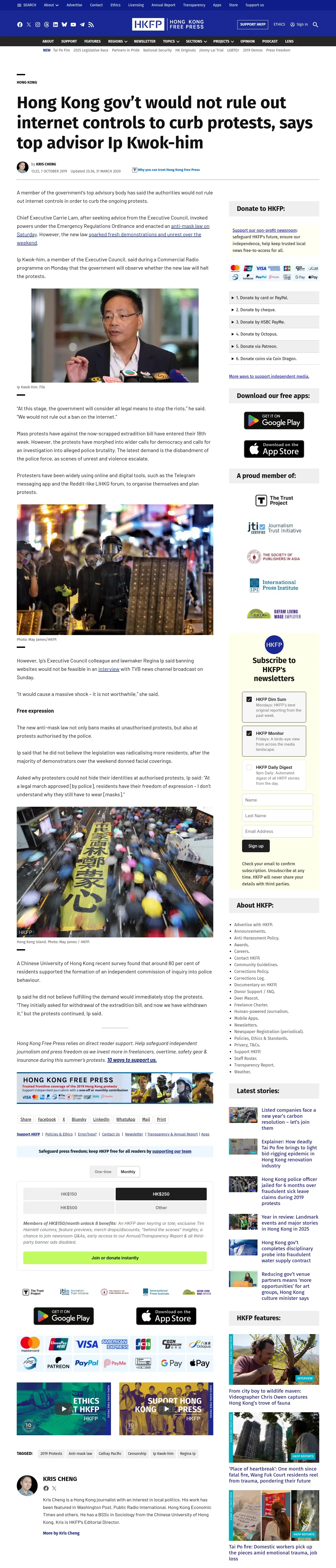 https://hongkongfp.com:443/2019/10/07/hong-kong-govt-not-rule-internet-controls-curb-protests-says-top-advisor-ip-kwok/
