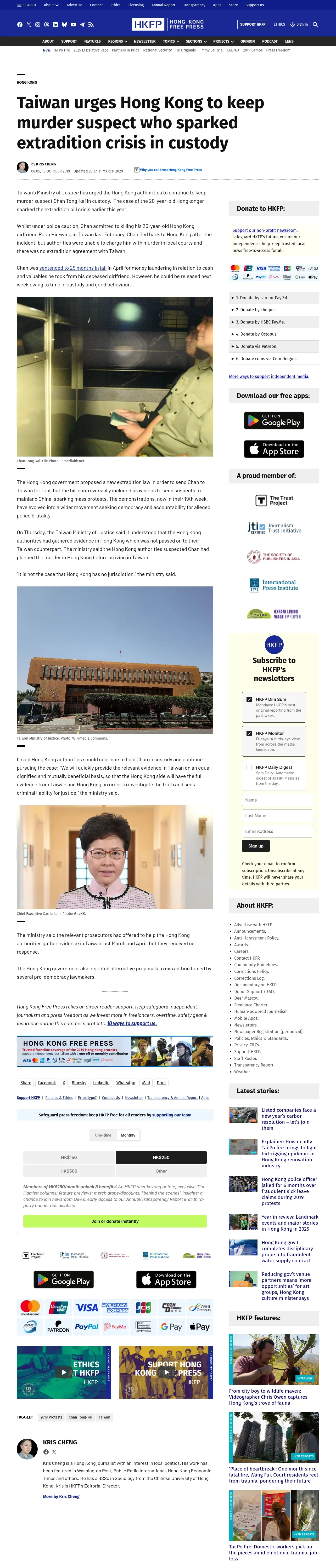 取得元URL: https://hongkongfp.com:443/2019/10/18/taiwan-urges-hong-kong-keep-murder-suspect-sparked-extradition-crisis-custody/