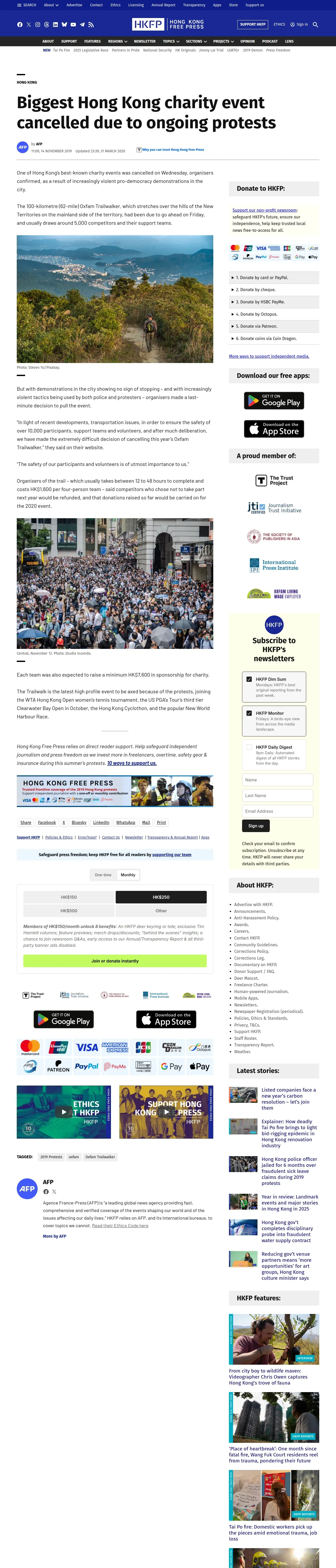 https://hongkongfp.com:443/2019/11/14/biggest-hong-kong-charity-walk-cancelled-due-ongoing-protests/