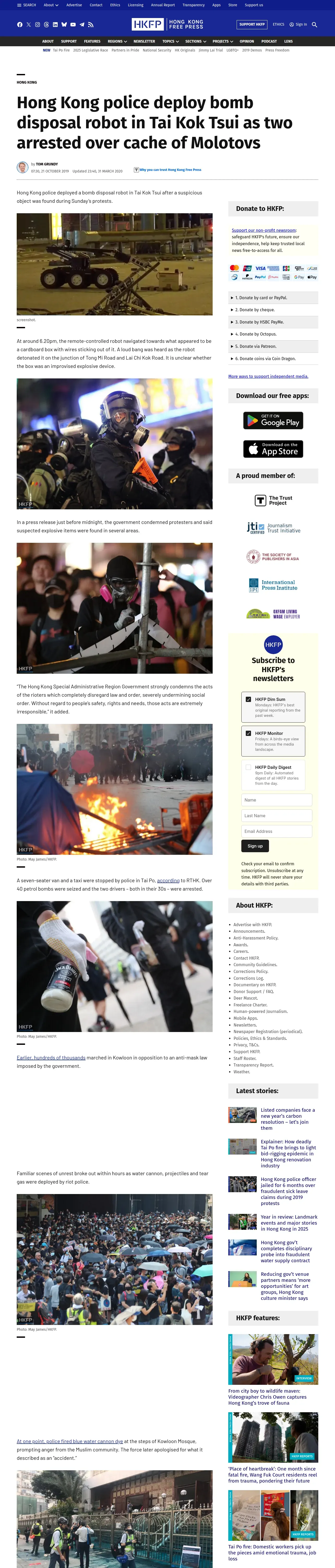 取得元URL: https://hongkongfp.com:443/2019/10/21/hong-kong-police-deploy-bomb-disposal-robot-tai-kok-tsui-two-arrested-cache-molotovs/