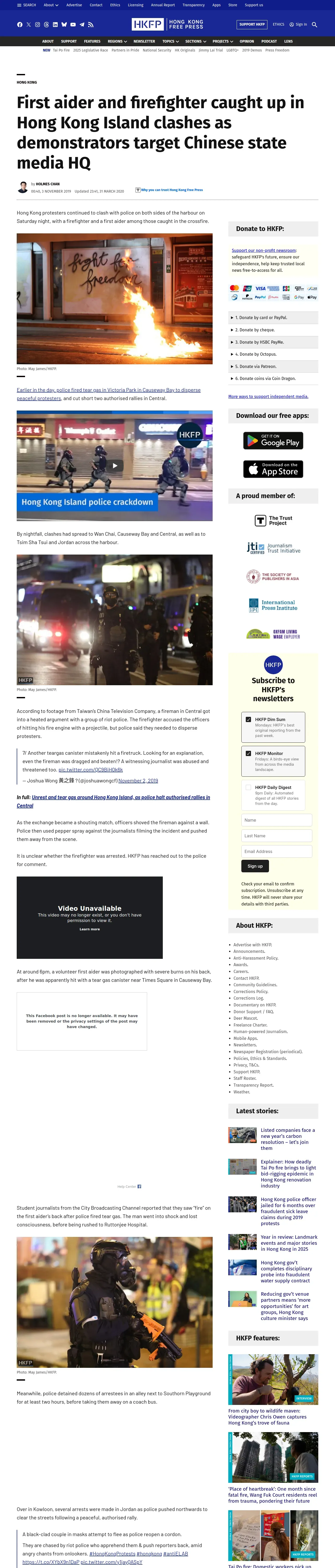 https://hongkongfp.com:443/2019/11/03/first-aider-firefighter-caught-hong-kong-island-clashes-demonstrators-target-chinese-state-media-hq/