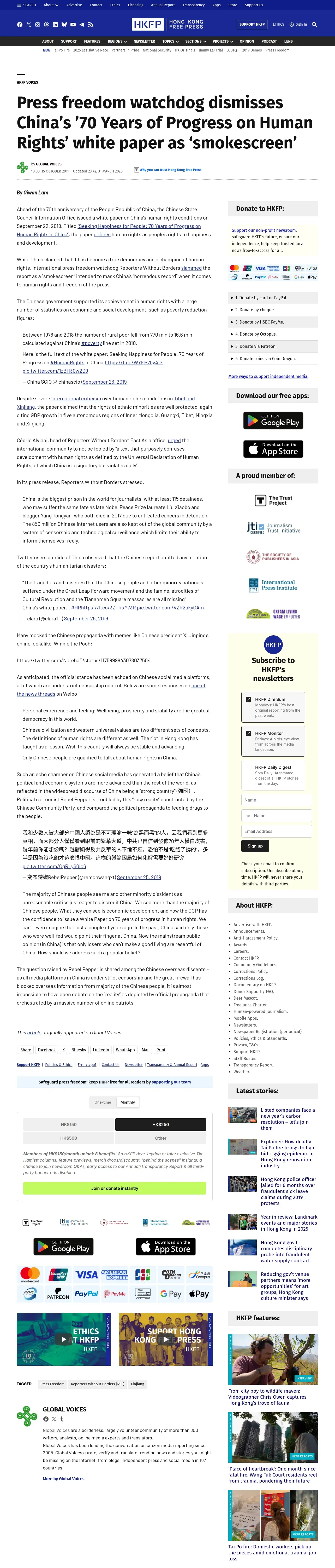 https://hongkongfp.com:443/2019/10/15/press-freedom-watchdog-dismisses-chinas-70-years-progress-human-rights-white-paper-smokescreen/