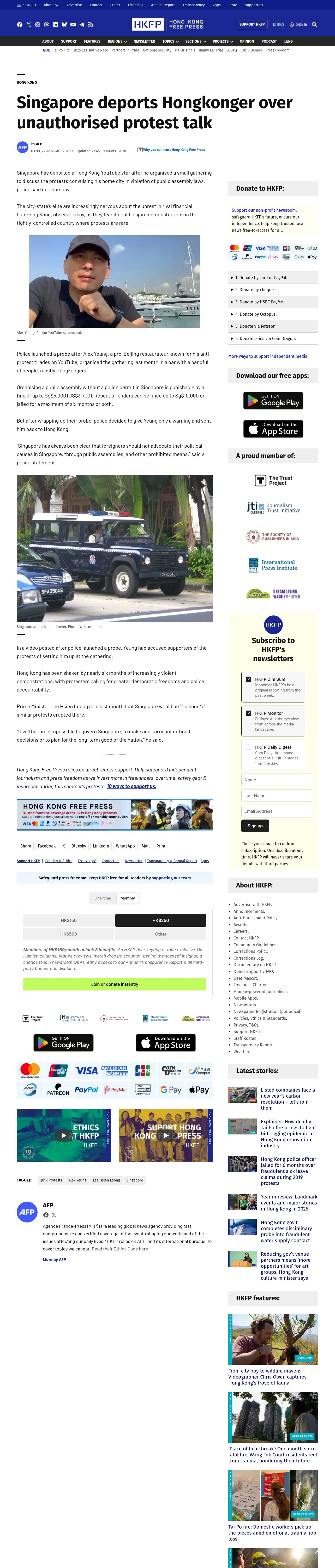 取得元URL: https://hongkongfp.com:443/2019/11/22/singapore-deports-hongkonger-unauthorised-protest-talk/