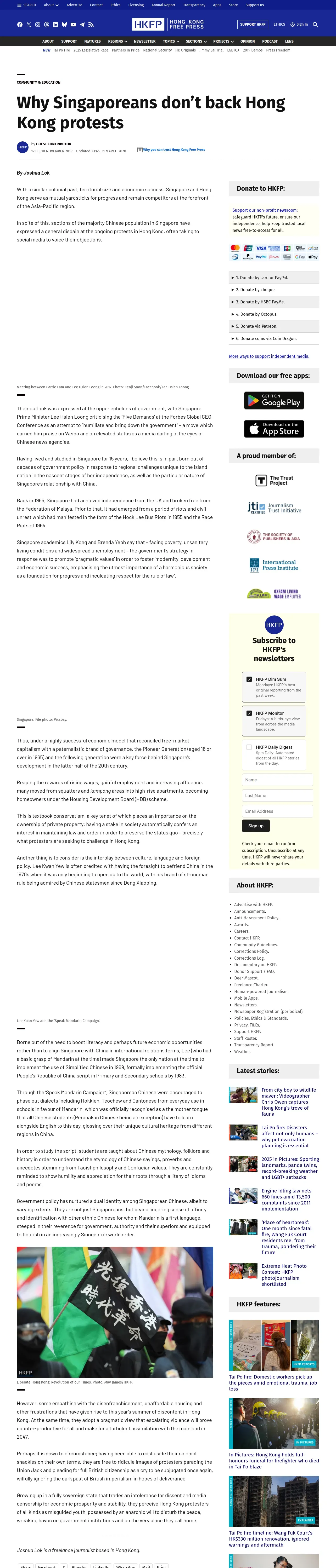 取得元URL: https://hongkongfp.com:443/2019/11/10/singaporeans-dont-back-hong-kong-protests/