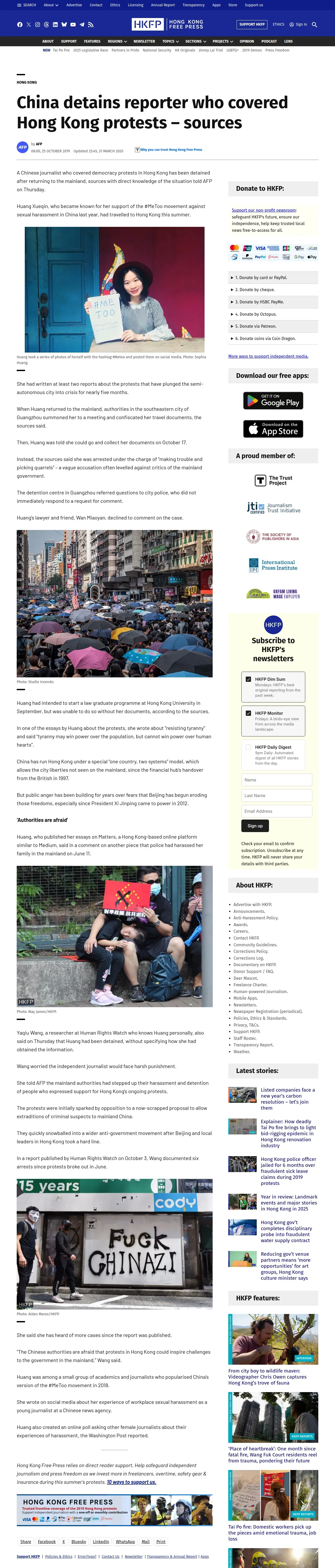 取得元URL: https://hongkongfp.com:443/2019/10/25/china-detains-reporter-covered-hong-kong-protests-sources/