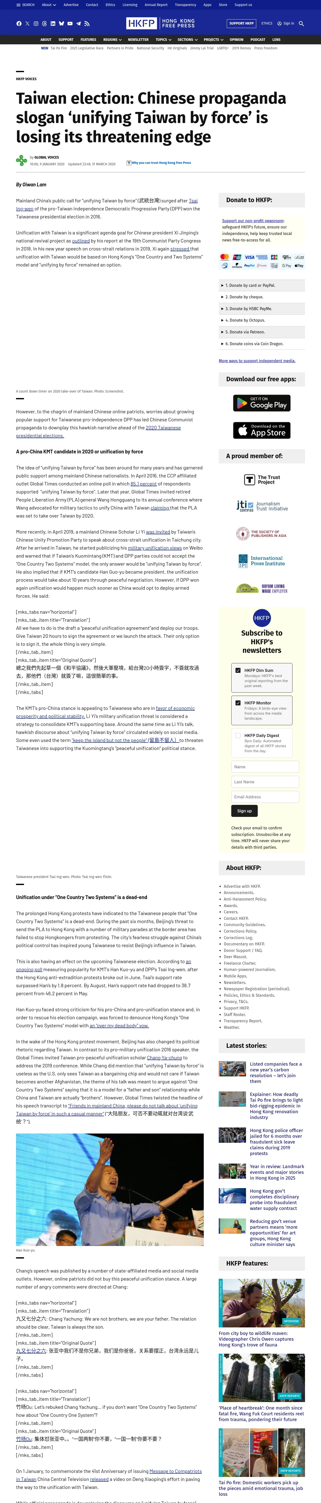 https://hongkongfp.com:443/2020/01/09/chinese-propaganda-slogan-unifying-taiwan-force-losing-threatening-edge/
