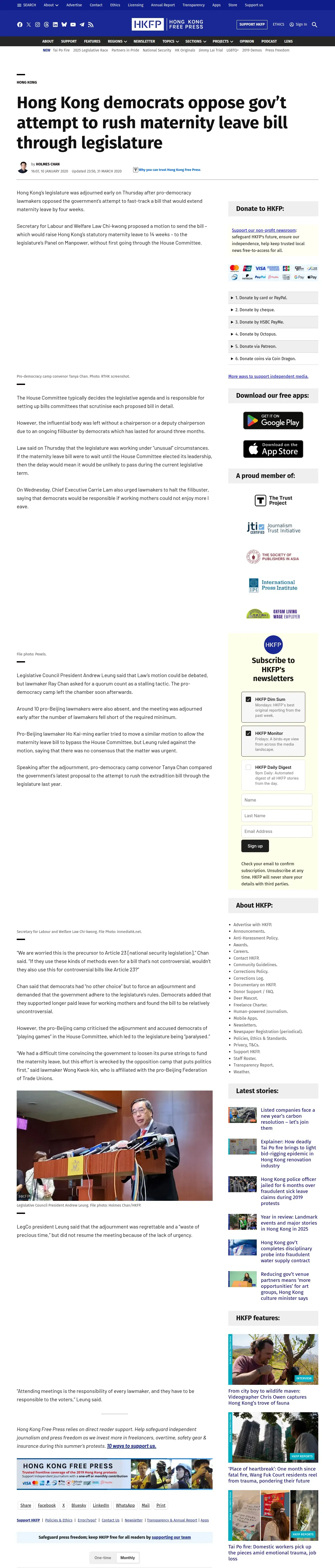 取得元URL: https://hongkongfp.com:443/2020/01/10/hong-kong-democrats-oppose-govt-attempt-rush-maternity-leave-bill-legislature/