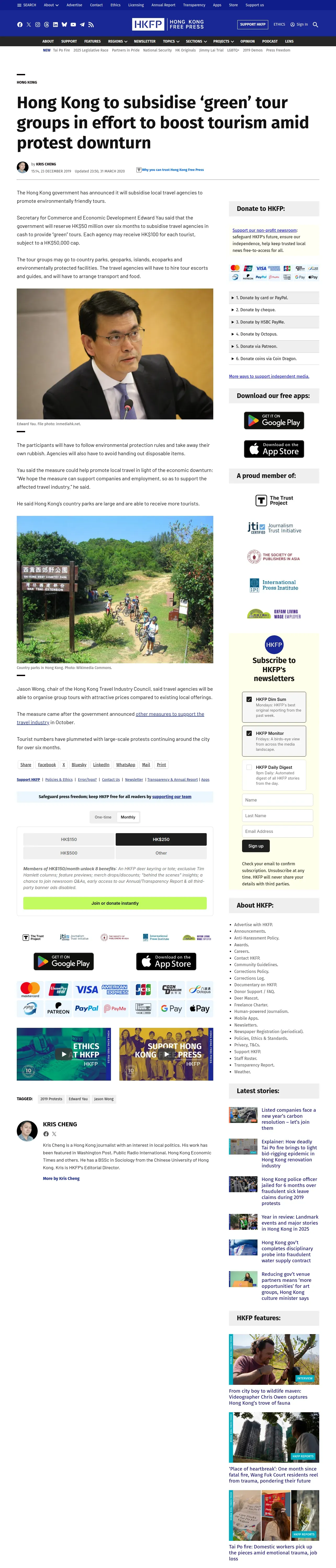 取得元URL: https://hongkongfp.com:443/2019/12/23/hong-kong-subsidise-green-tour-groups-effort-boost-tourism-amid-protest-downturn/