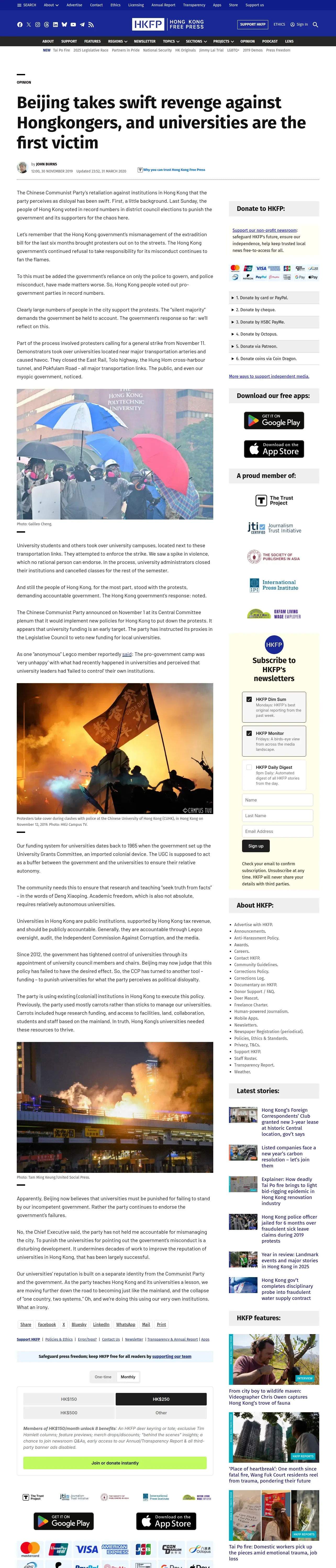 https://hongkongfp.com:443/2019/11/30/beijing-takes-swift-revenge-hongkongers-universities-first-victim/