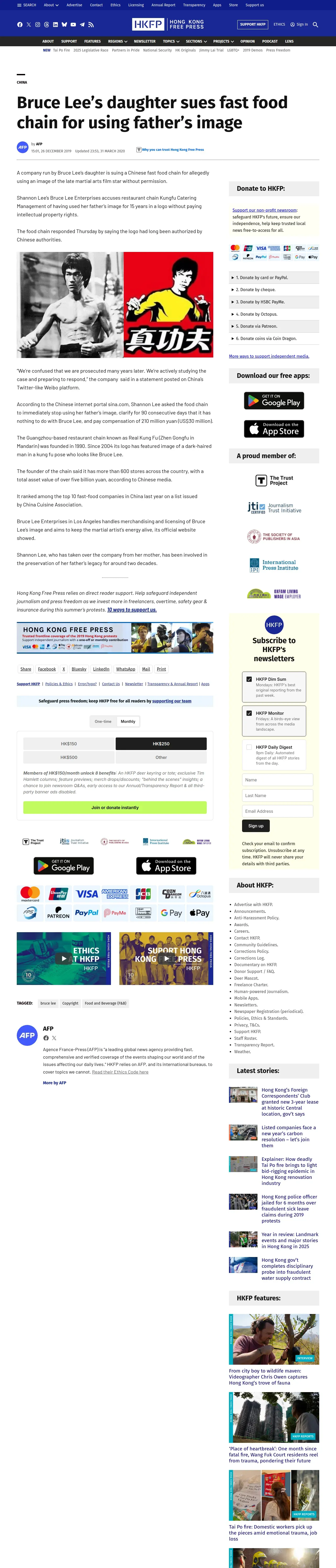 取得元URL: https://hongkongfp.com:443/2019/12/26/bruce-lees-daughter-sues-fast-food-chain-using-fathers-image/
