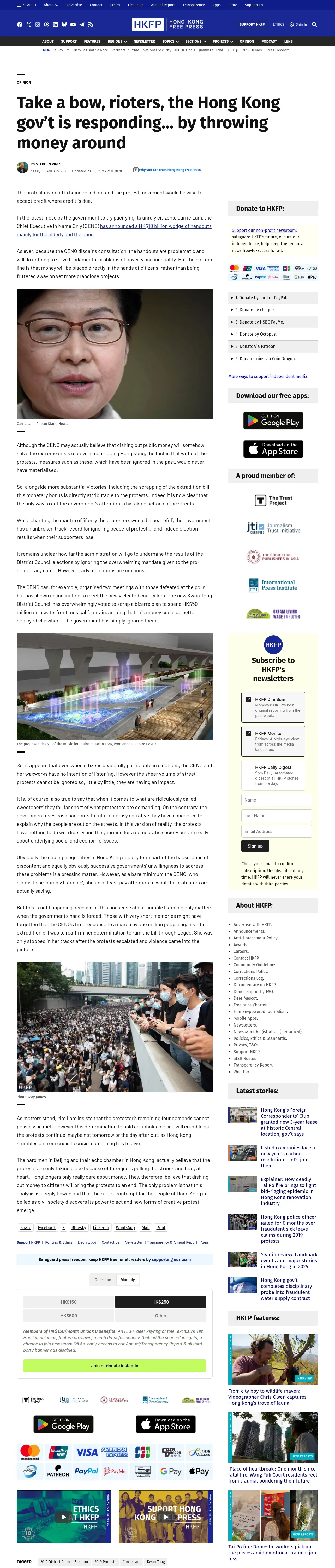 取得元URL: https://hongkongfp.com:443/2020/01/19/take-bow-rioters-hong-kong-govt-responding-throwing-money-around/
