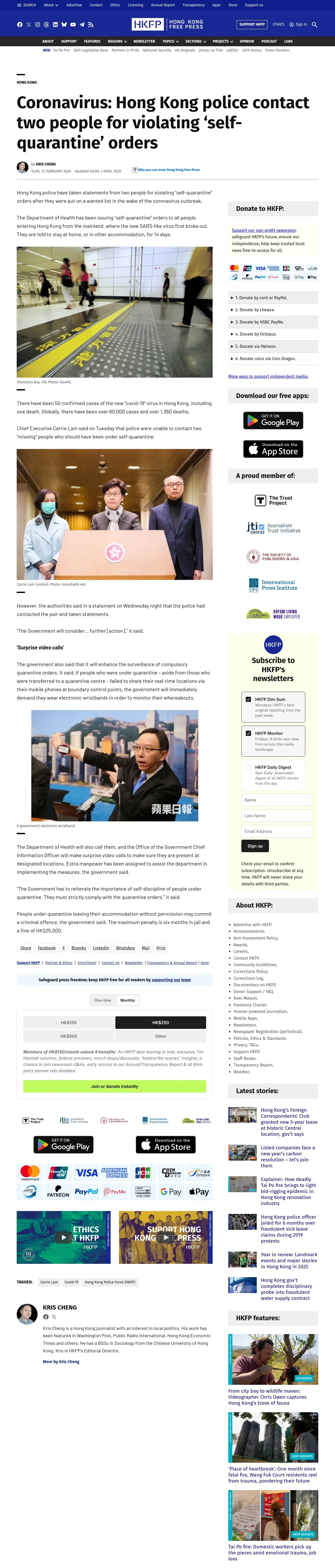 取得元URL: https://hongkongfp.com:443/2020/02/13/coronavirus-hong-kong-police-contact-two-people-violating-self-quarantine-orders/