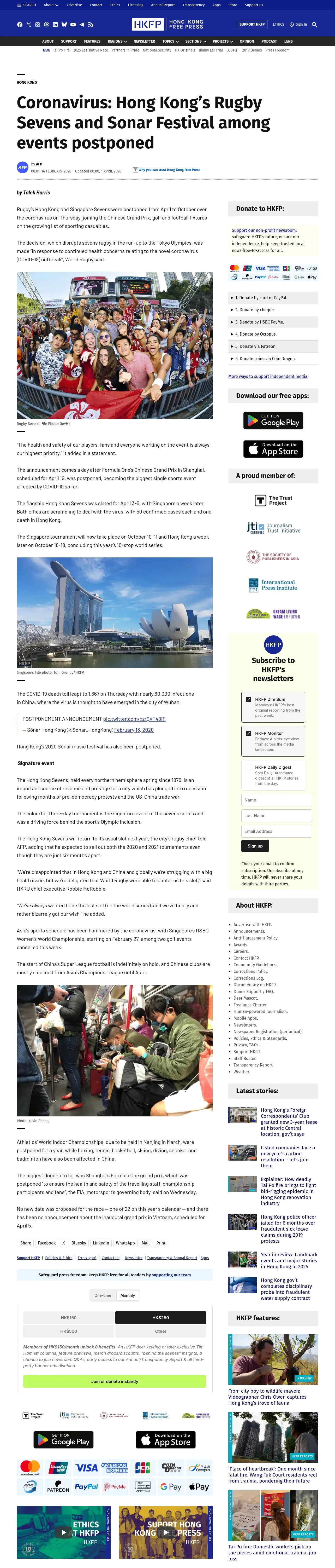 取得元URL: https://hongkongfp.com:443/2020/02/14/coronavirus-hong-kongs-rugby-sevens-sonar-festival-among-events-postponed/