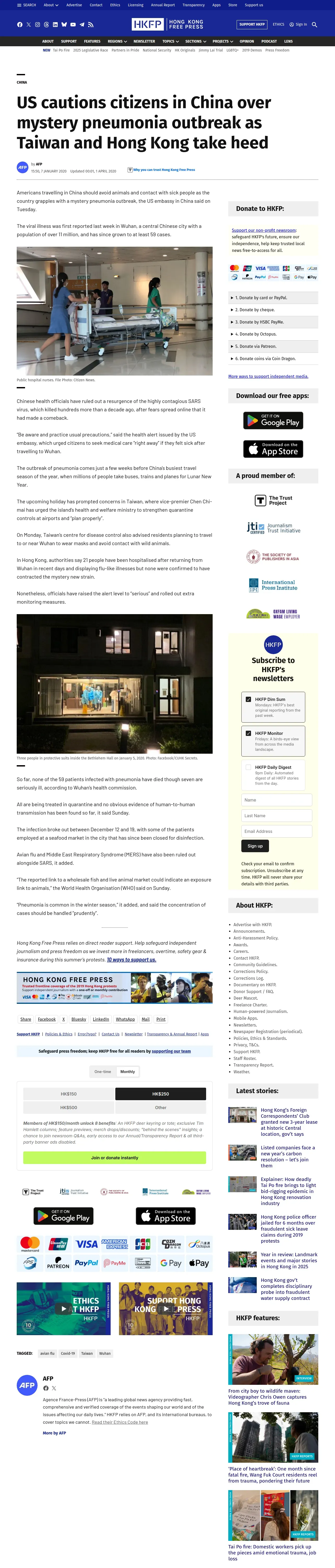 https://hongkongfp.com:443/2020/01/07/us-cautions-citizens-china-mystery-pneumonia-outbreak-taiwan-hong-kong-take-heed/