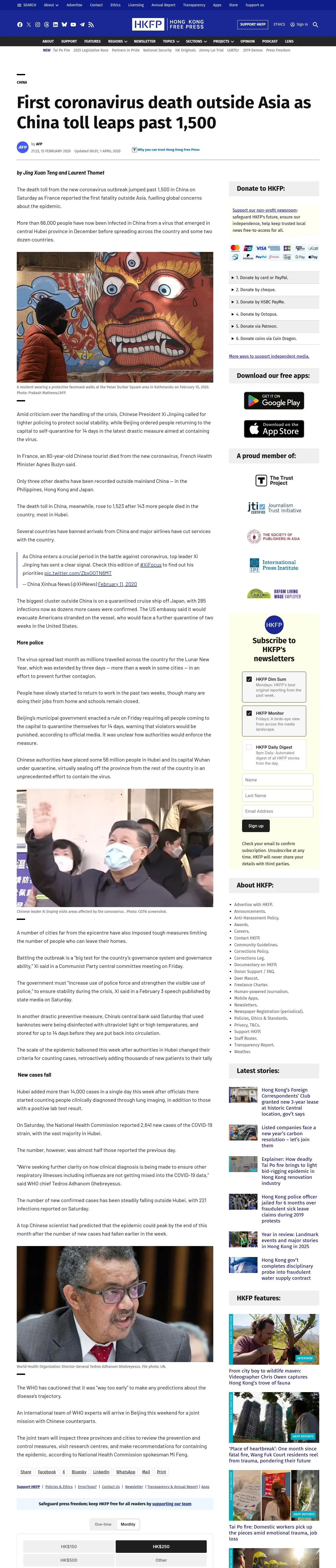 https://hongkongfp.com:443/2020/02/15/first-coronavirus-death-outside-asia-china-toll-leaps-past-1500/