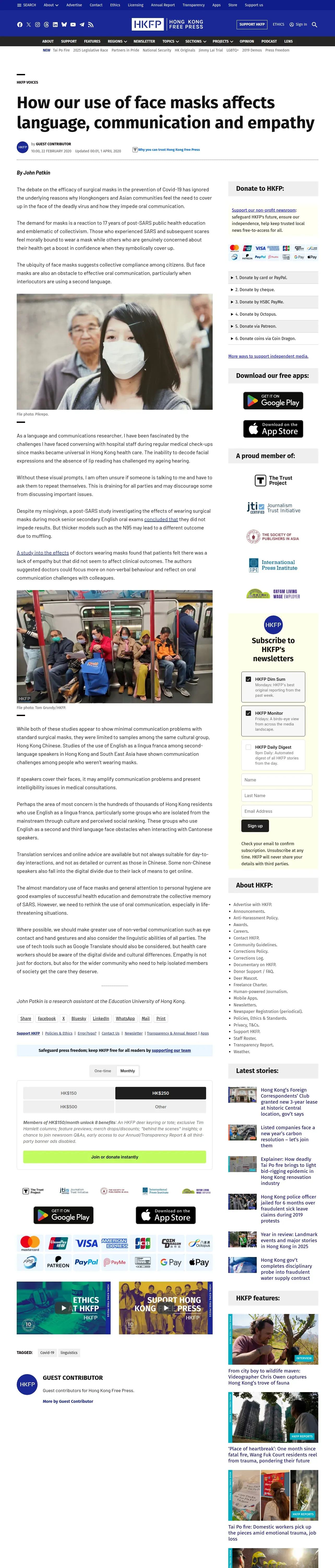 https://hongkongfp.com:443/2020/02/22/use-face-masks-affects-language-communication-empathy/