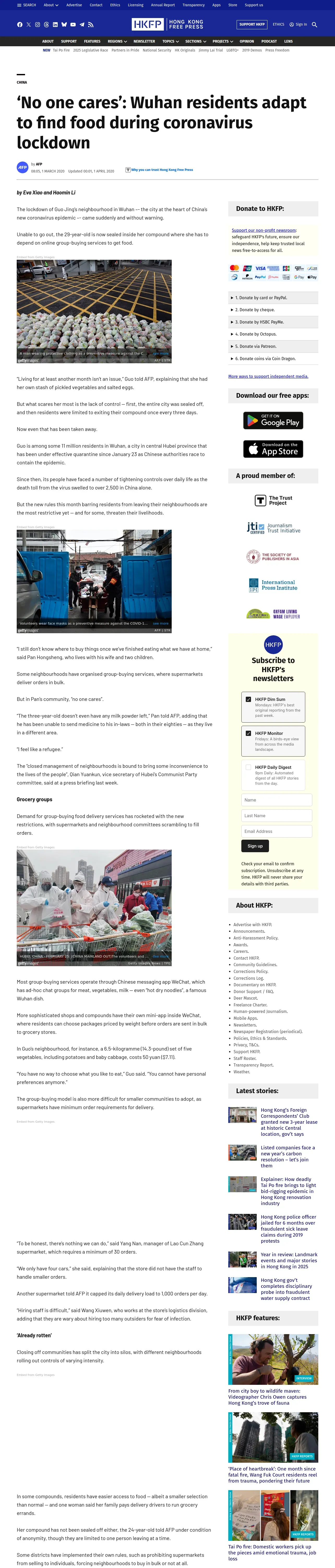 https://hongkongfp.com:443/2020/03/01/no-one-cares-wuhan-residents-adapt-find-food-coronavirus-lockdown/