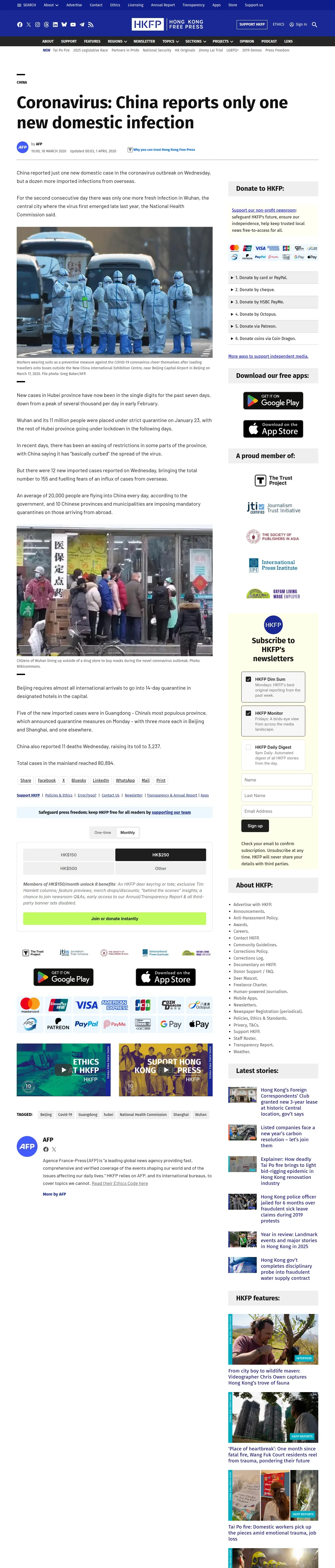 https://hongkongfp.com:443/2020/03/18/coronavirus-china-reports-one-new-case-infection/
