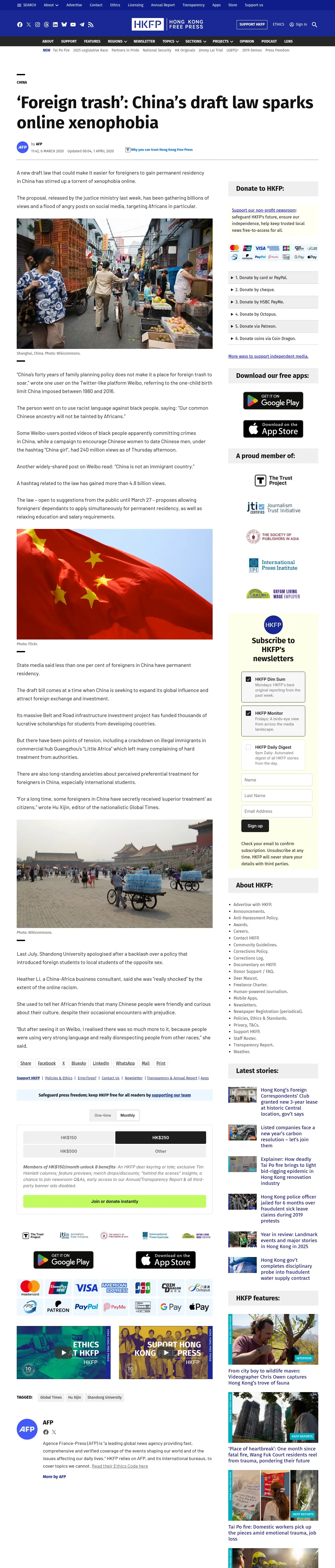 https://hongkongfp.com:443/2020/03/06/foreign-trash-chinas-draft-law-sparks-online-xenophobia/