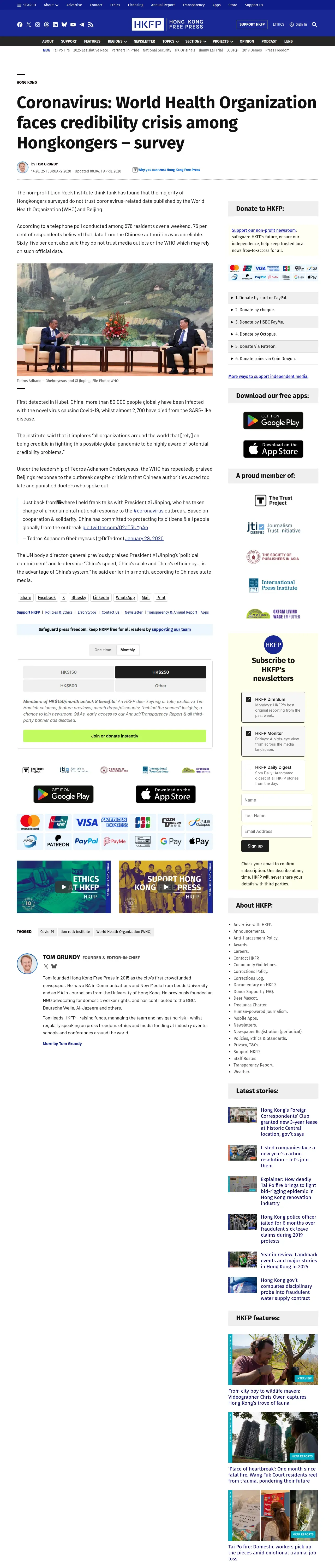 https://hongkongfp.com:443/2020/02/25/coronavirus-world-health-organization-faces-credibility-crisis-among-hongkongers-survey/