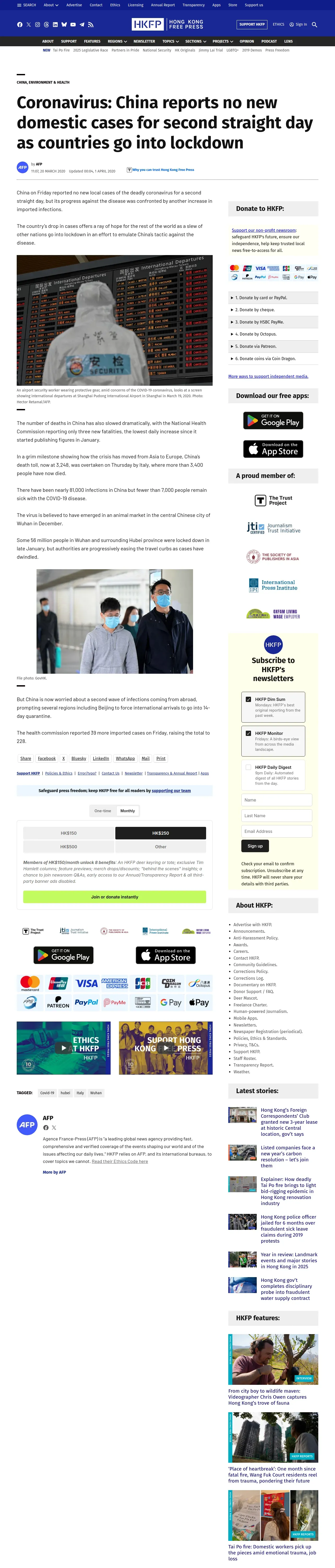https://hongkongfp.com:443/2020/03/20/coronavirus-china-reports-no-new-domestic-cases-second-straight-day-countries-go-lockdown/