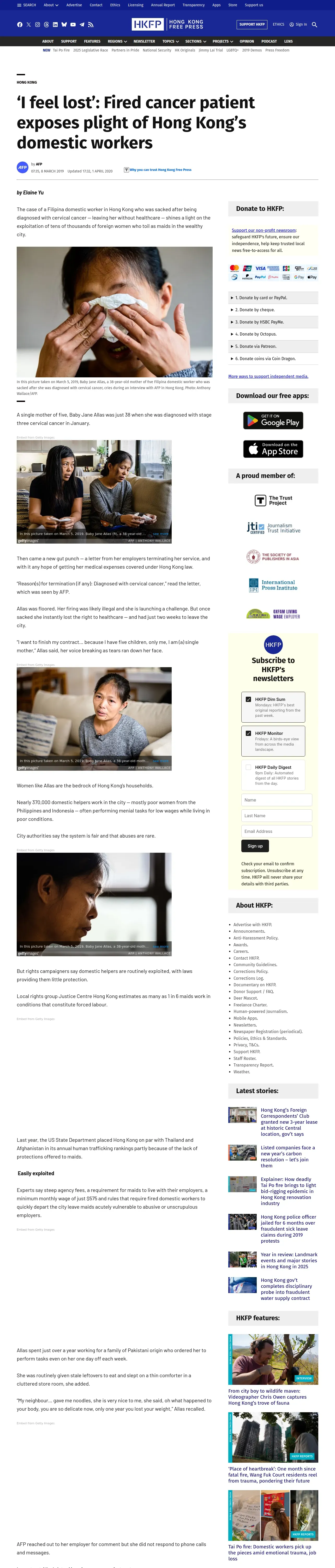 取得元URL: https://hongkongfp.com:443/2019/03/08/i-feel-lost-fired-cancer-patient-exposes-plight-hong-kongs-domestic-workers/