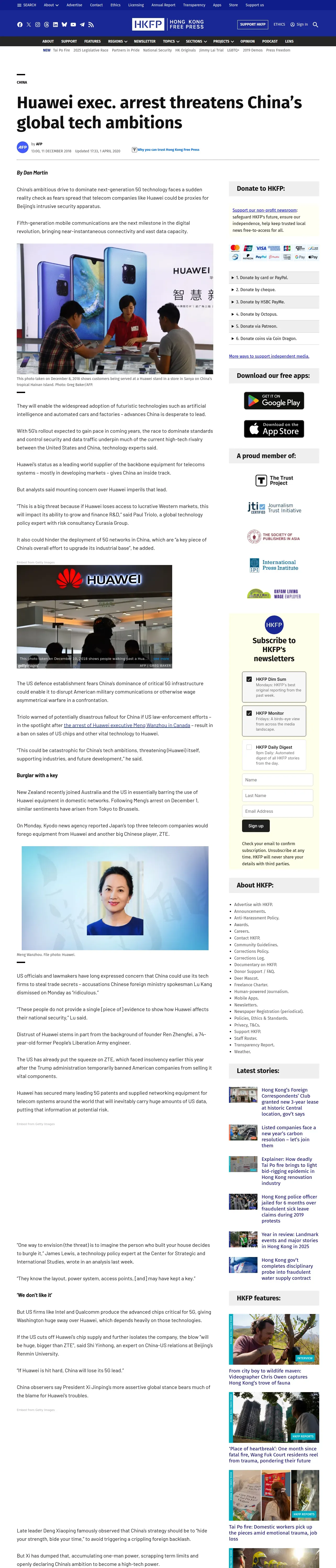 https://hongkongfp.com:443/2018/12/11/huawei-exec-arrest-threatens-chinas-global-tech-ambitions/