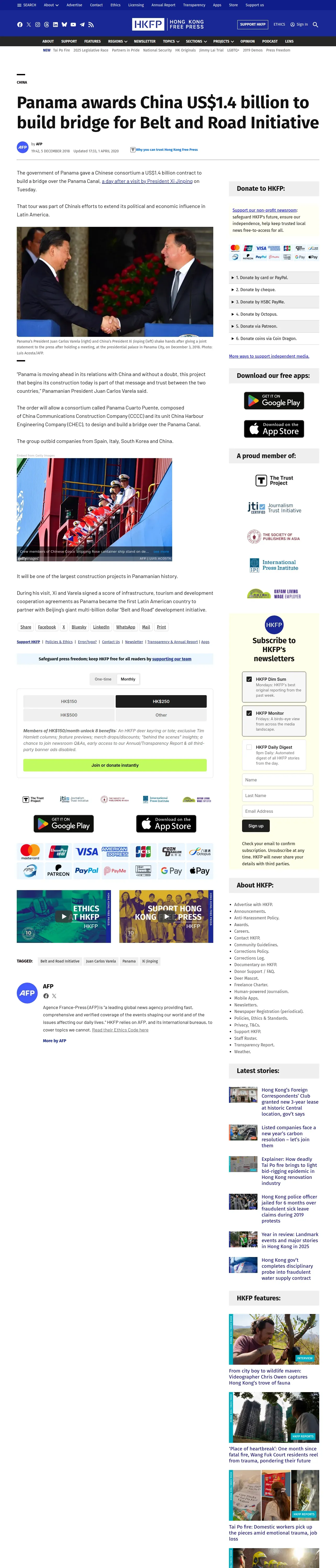 取得元URL: https://hongkongfp.com:443/2018/12/05/panama-awards-china-us1-4-billion-build-bridge-belt-road-initiative/