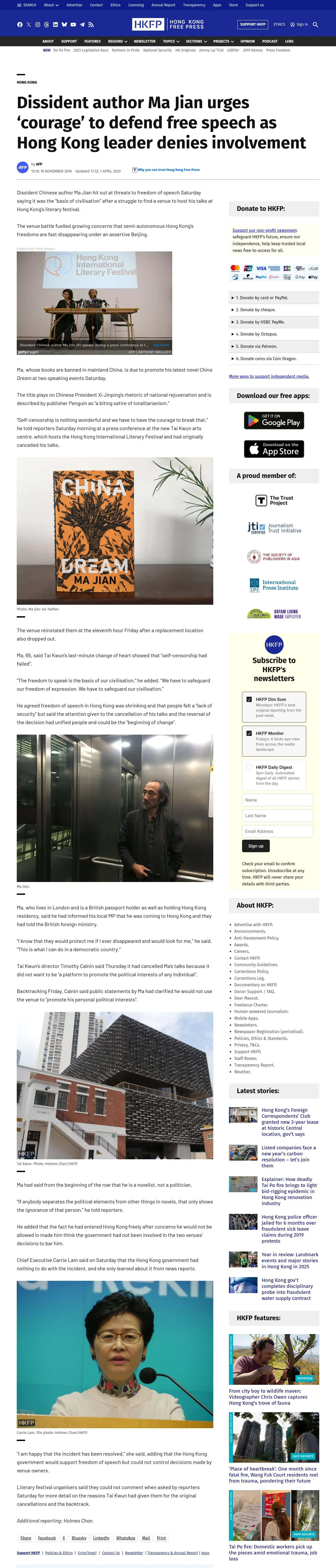 https://hongkongfp.com:443/2018/11/10/dissident-author-ma-jian-urges-courage-defend-free-speech-hong-kong-leader-denies-involvement/