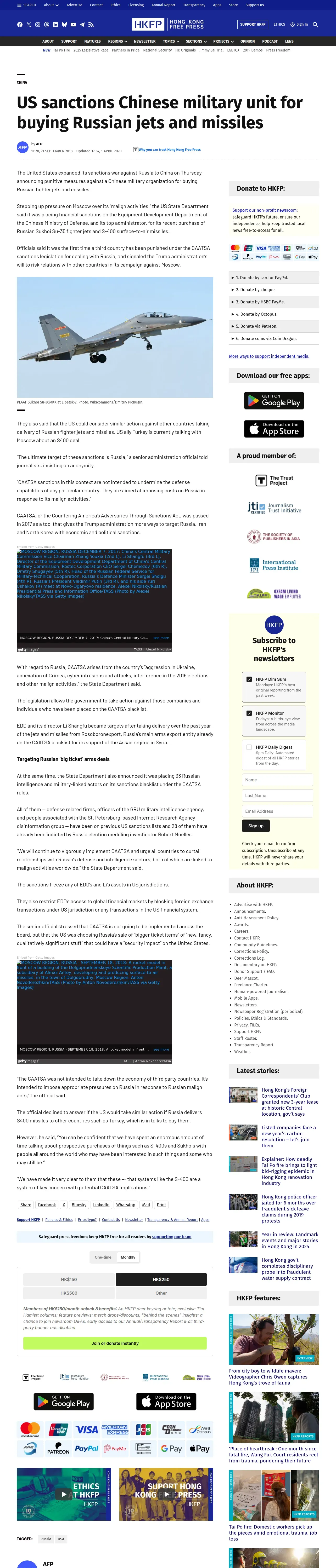 https://hongkongfp.com:443/2018/09/21/us-sanctions-chinese-military-unit-buying-russian-jets-missiles/