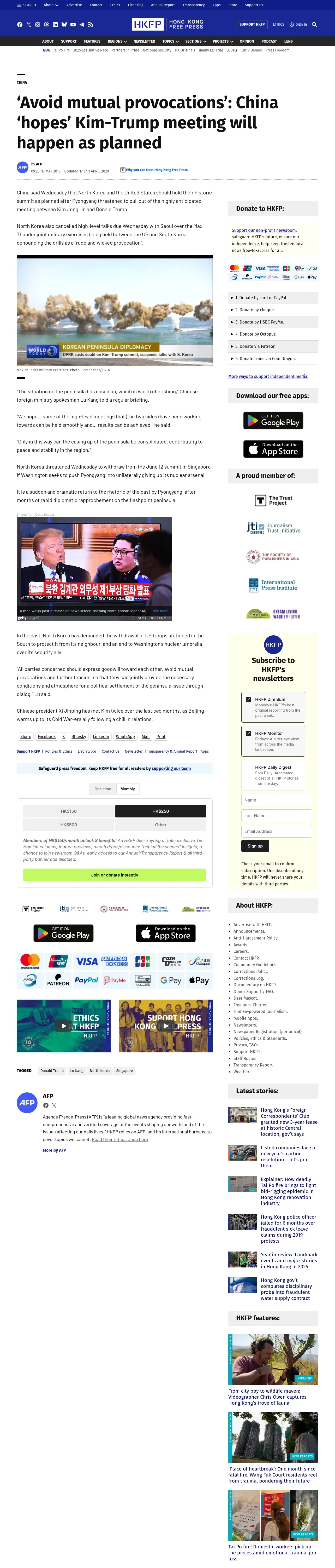 https://hongkongfp.com:443/2018/05/17/avoid-mutual-provocations-china-hopes-kim-trump-meeting-will-happen-planned/