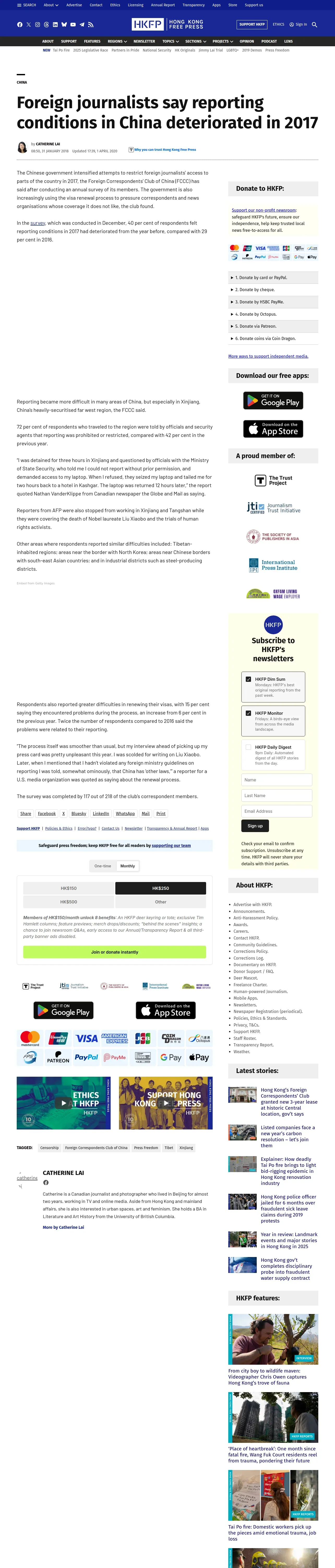 https://hongkongfp.com:443/2018/01/31/foreign-journalists-say-reporting-conditions-china-deteriorated-2017/