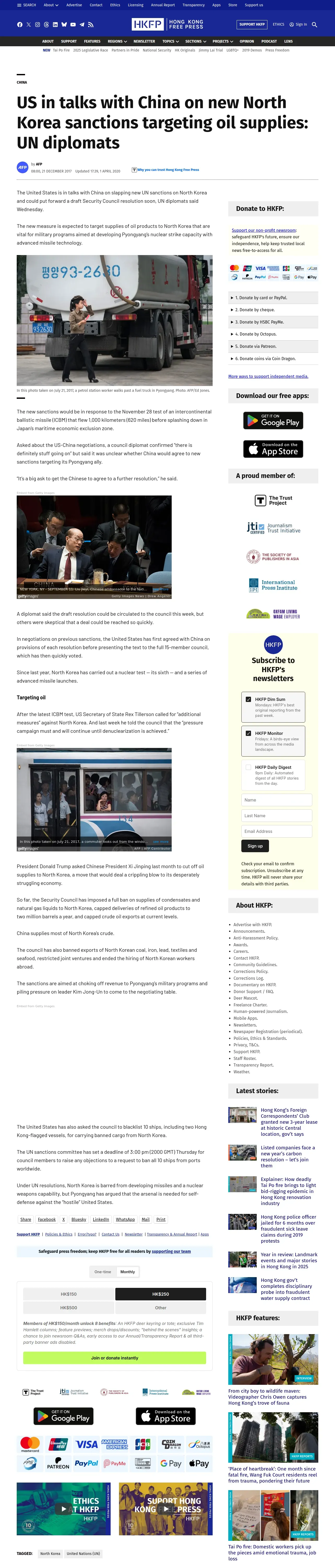 取得元URL: https://hongkongfp.com:443/2017/12/21/us-talks-china-new-north-korea-sanctions-targeting-oil-supplies-un-diplomats/