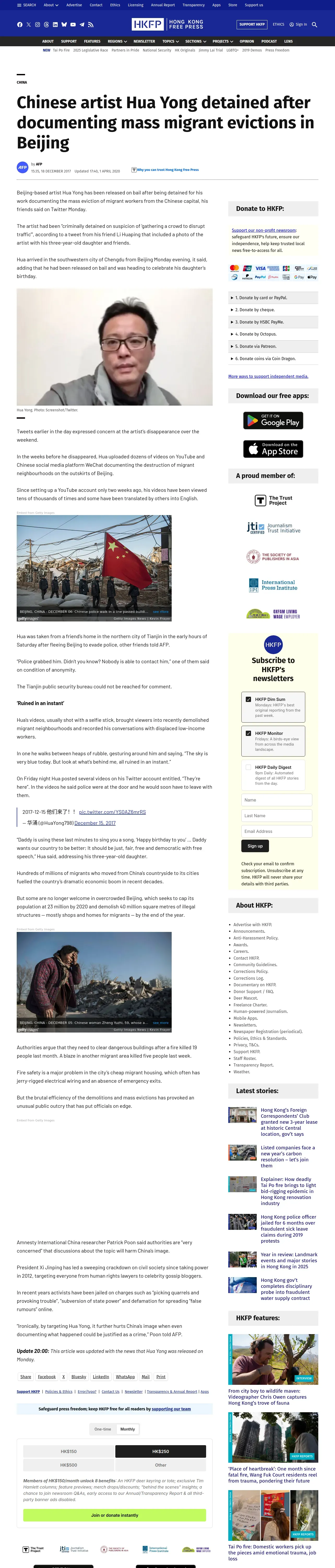 https://hongkongfp.com:443/2017/12/18/chinese-artist-hua-yong-detained-documenting-mass-migrant-evictions-beijing/